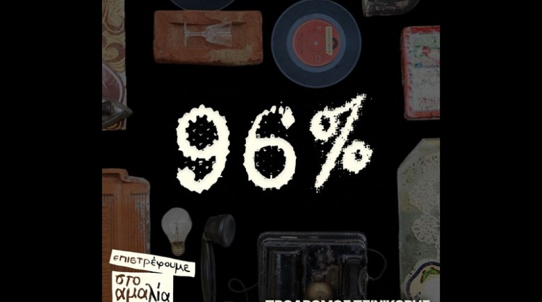 Το 96% αποτελεί μια lecture performance του Πρόδρομου Τσινικόρη και της ομάδας του και στο «μικροσκόπιο» τους μπαίνει η Θεσσαλονίκη του 1943. Αφηγείται μια ιστορία σκοτεινή και λησμονημένη, τα ίχνη της οποίας όμως είναι ακόμα εδώ. Η παράσταση - ντοκιμαντέρ, επιχειρώντας μια αρχαιολογία του παρόντος, τα αναζητά, όχι μόνο σε μελέτες, αρχεία και μαρτυρίες, αλλά και με επιτόπια έρευνα στη σημερινή πόλη, στους δρόμους, στα κλειστά μαγαζιά, στα παλιά και τα καινούργια κτίρια, ακόμα και στο ίδιο το ΚΘΒΕ, όπου η παράσταση πρωτο-παρουσιάστηκε.