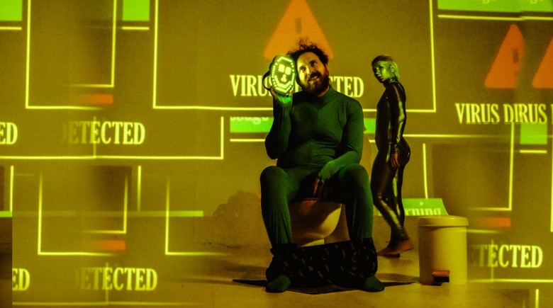 Η παράσταση είναι, ειλικρινά, εξουθενωτική. Σαν να σκρολάρεις ασταμάτητα στα σόσιαλ, τρολάροντας ανελέητα μέσα από memes, σαν να ζεις ένα live feed του κόσμου σε μεγέθυνση, γεμάτο παράλογες συμπεριφορές που φαίνονται λογικές και, ίσως, σε κάνουν να αναρωτηθείς: που ζούμε ρε μ@λ@κ@;