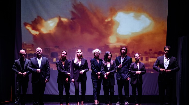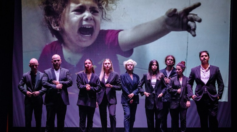 Στη σκηνή, οι μνήμες και οι φωνές των Εβραίων της Θεσσαλονίκης που εξοντώθηκαν στο Άουσβιτς διασταυρώνονται με σύγχρονες μαρτυρίες Παλαιστινίων από τη Γάζα. Οι οκτώ ηθοποιοί, με τη συνοδεία ηλεκτρικής κιθάρας επί σκηνής, δημιουργούν ένα σύμπαν όπου ο χορός της αρχαίας τραγωδίας συναντά το θέατρο-ντοκουμέντο, μετατρέποντας την αισθητική εμπειρία σε πεδίο ενεργούς αλληλεγγύης.