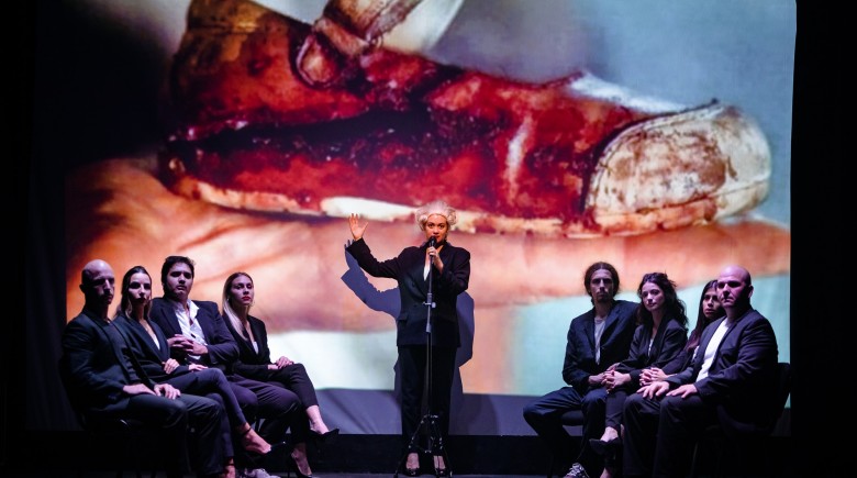 Μια τολμηρή σκηνική σύνθεση που ενώνει τον Σαίξπηρ με την C.Churchill, τις μαρτυρίες του Άουσβιτς με τις ζωντανές φωνές από τη Γάζα. Από την ομάδα Ars Moriendi Theater Group, σε σκηνοθεσία Θάνου Νίκα, για λίγες μόνο παραστάσεις στη Θεσσαλονίκη.