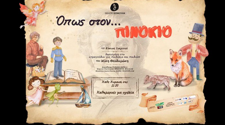 Το Θέατρο Σοφούλη παρουσιάζει για τη θεατρική σεζόν 2025-2026 την παράσταση για παιδιά «Όπως στον Πινόκιο» της Κάκιας Ιγερινού. Πρόκειται για ένα έργο βασισμένο στα «Τραγούδια για παιδάκια και παιδιά» του μεγάλου Μίκη Θεοδωράκη και αποτελεί έναν ύμνο στο «τσαγανό», στο θάρρος να κυνηγάς τη μοίρα σου, να κάνεις φίλους με τους οποίους σε συνδέει η αλληλεγγύη αλλά και να υφίστασαι τις συνέπειες των πράξεών σου. Απέναντι στις εύθραυστες πριγκίπισσες, ο Μιχαλάκης όπως στον Πινόκιο, ζει περιπέτειες, διεκδικεί και μαθαίνει! Μετά την τεράστια επιτυχία της παράστασης «Το αγόρι που μιλούσε με τα πουλιά», εμπνευσμένη από τη ζωή του μεγάλου δημιουργού Σταύρου Κουγιουμτζή και με αφορμή τα 100 χρόνια από τη γέννηση του μεγάλου Έλληνα συνθέτη Μίκη Θεοδωράκη το Θέατρο Σοφούλη παρουσιάζει ένα έργο που μιλάει στην καρδιά μικρών και μεγάλων.