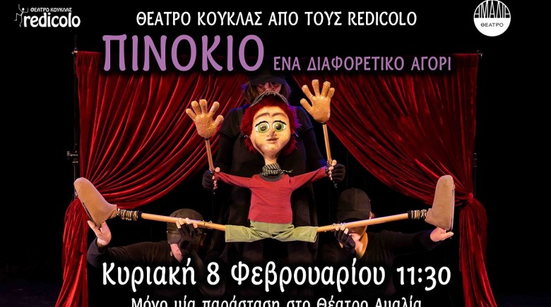 Η παράσταση «Πινόκιο, ένα Διαφορετικό Αγόρι» είναι μια πρόταση σύγχρονου θεάτρου κούκλας από τους Redicolo, που μιλά για τη διαφορετικότητα, την ανάγκη σύνδεσης με τους άλλους και την επιθυμία για αποδοχή. Με κούκλες σε ανθρώπινο μέγεθος, θεατρικές μάσκες, ηθοποιούς παρόντες στη σκηνή και ενεργή συμμετοχή των παιδιών, η ιστορία ξεδιπλώνεται μέσα από άμεση θεατρική δράση και ουσιαστική επικοινωνία με το κοινό. Το θέατρο λειτουργεί με τα βασικά του εργαλεία –σώμα, φωνή, κίνηση, ρυθμό και σχέση– δημιουργώντας μια ζωντανή εμπειρία που συνδυάζει αφήγηση, παιχνίδι και σκέψη, και απευθύνεται ταυτόχρονα σε παιδιά και γονείς.