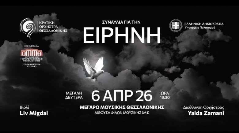 Η Κρατική Ορχήστρα Θεσσαλονίκης παρουσιάζει σε Θεσσαλονίκη και Αθήνα μία συναυλία-προσευχή για την Ειρήνη, με τη μουσική να ενώνει συνθέτες και ερμηνευτές που, δυστυχώς, χωρίζει ο πόλεμος. Η συναυλία στη Θεσσαλονίκη πραγματοποιείται σε συνεργασία με το Μέγαρο Μουσικής Θεσσαλονίκης και στην Αθήνα σε συμπαραγωγή με την Εθνική Λυρική Σκηνή.