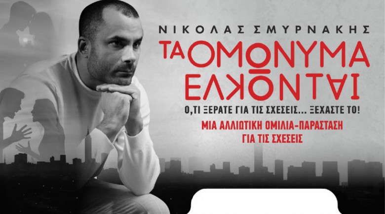 - 17€ από 20€ για Είσοδο 1 Ατόμου στην Ομιλία - Παράσταση «Τα Ομώνυμα Έλκονται» του Νικόλα Σμυρνάκη, στο Θέατρο ArtBox Fargani