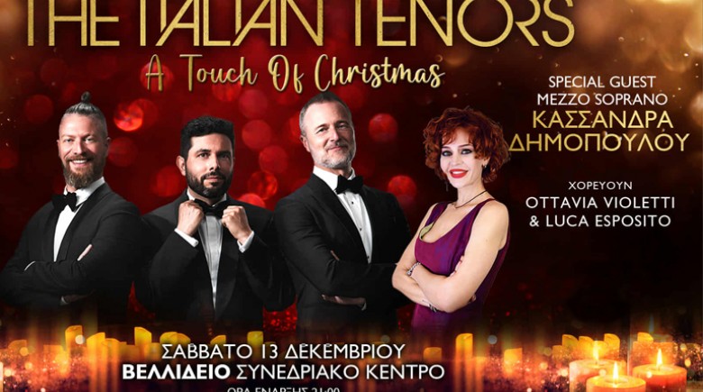 Πιστοί στο Xριστουγεννιάτικο τους rendez-vous με το κοινό της Θεσσαλονίκης, οι αγαπημένοι του ελληνικού κοινού The Italian Tenors έρχονται στο Συνεδριακό Κέντρο Ιωάννης Βελλίδης, το Σάββατο 13 Δεκεμβρίου, για μία εμφάνιση με την παράσταση A Touch of Christmas, δίνοντας μια ιδιαίτερη μουσική πινελιά στο εορταστικό πνεύμα των ημερών που έρχονται, της πιο ωραίας εποχής του χρόνου, που είναι τα Χριστούγεννα. Μαζί τους, η εκλεκτή καλεσμένη τους, η γνωστή μεσόφωνος Κασσάνδρα Δημοπούλου.
