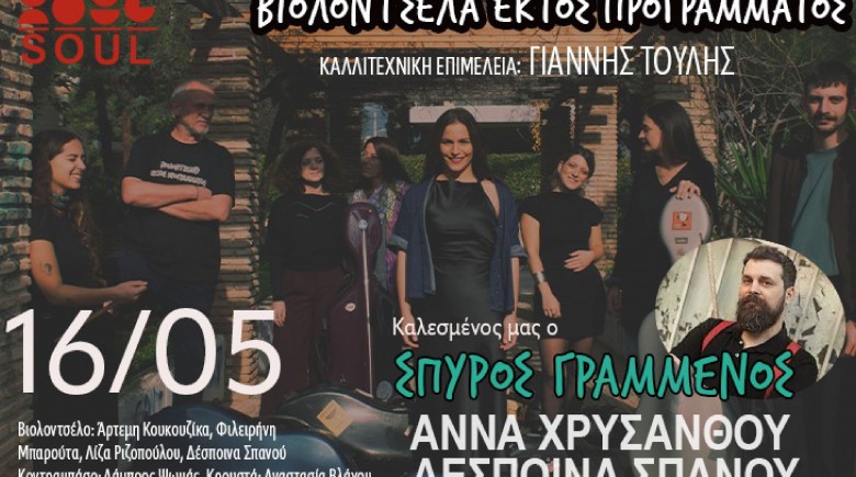 Μια ξεχωριστή μουσική εμπειρία έρχεται στη Θεσσαλονίκη το Σάββατο 16 Μαΐου 2026, καθώς τα «Βιολοντσέλα Εκτός Προγράμματος» συναντούν επί σκηνής τον Σπύρο Γραμμένο στο SOUL.